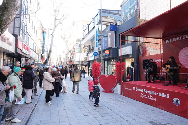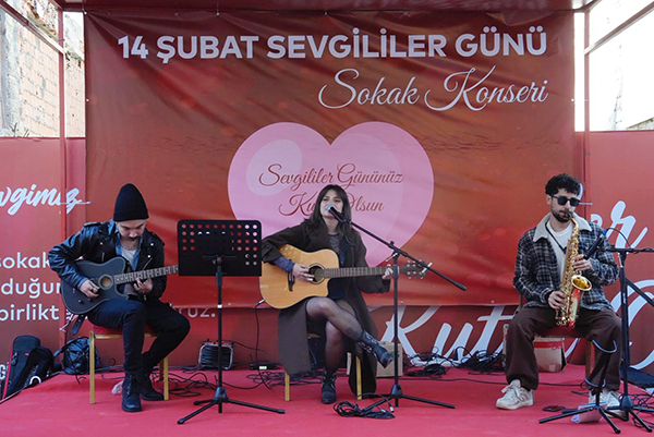 Kutlamaların coşkusu, Ankara Caddesi boyunca sergilenen sanatsal performanslarla doruğa ulaştı. Kartal’ın tarihi caddesinde gerçekleştirilen gösteriler, romantizmin farklı tonlarını katılımcılara yaşattı. Profesyonel dans topluluğunun Ankara Caddesi’nin tarihi dokusunda sergilediği büyüleyici tango ve vals gösterileri, izleyicilerden tam not aldı. Latin ritimlerinin tutkusu ve klasik valsın zarafetiyle süslenen gösterim, aşkın evrensel dilini Kartallılara bir kez daha hatırlattı. Bazı cesur çiftler de sanatçıların davetiyle piste çıkarak dans etmenin keyfini yaşadı. Özel olarak kurulan sahnede ise, sevgi temalı ve romantik şarkılar seslendirildi. Yerel sanatçıların seslendirdiği aşk şarkılarına yüzlerce Kartallı hep bir ağızdan eşlik ederken, cadde adeta dev bir konser alanına dönüştü.